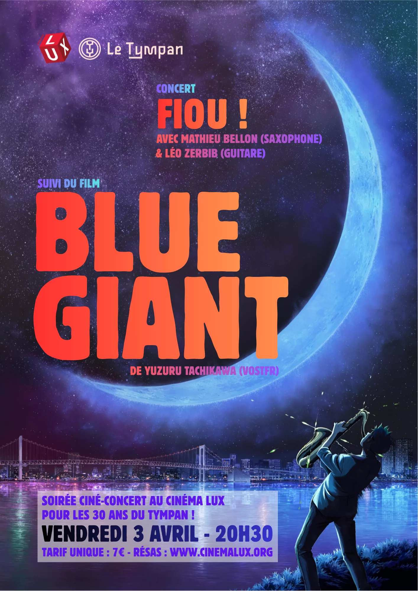 CinĂ©-concert – Blue Giant – les 30 ans du Tympan ! 🎂