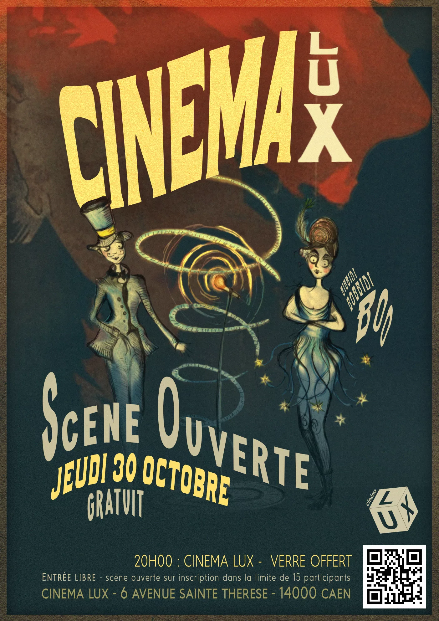 Le mercredi 30 octobre à 20h00, le Cinéma LUX ouvre son rideau rouge pour une soirée scène ouverte placée sous le signe de l’apparition.