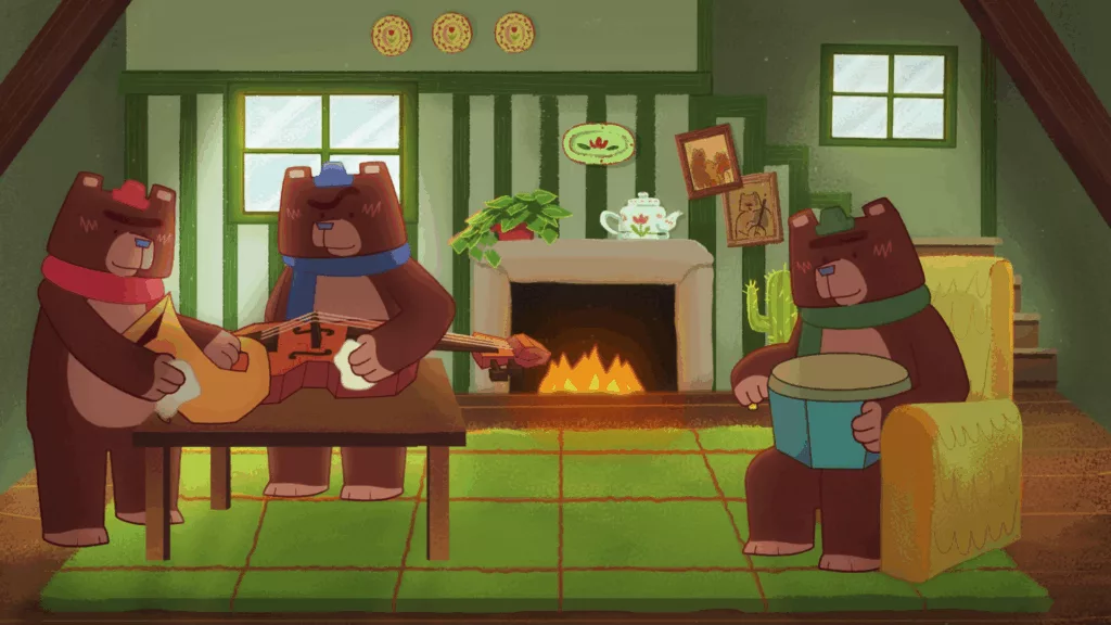 Au cœur de l’hiver, la neige recouvre tout, et le silence s’installe doucement. Mais écoutez bien : dans ce grand calme blanc, mille sons vont bientôt éclore ! Tendez l’oreille et vous entendrez la forêt qui fredonne tout bas, la joyeuse cacophonie des petits yétis et la grande fanfare des ours et des renards. L’hiver a sa propre musique : saurez-vous l’entendre ? Car c’est avec la musique que la magie de Noël peut commencer !